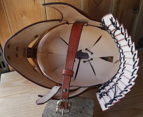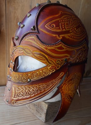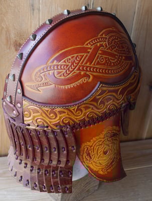 Créations · 03. septembre 2017 Casque d'inspiration celte Création Eden Esprit Cuir en cuir végétal Casque en croupon de 4,5 mm. Teinture écologique et couture main au point sellier. Temps de repoussage environ 12 heures. Casque celte tagPlaceholderCatégories : nouveaute-creation Écrire commentaire Commentaires: 0