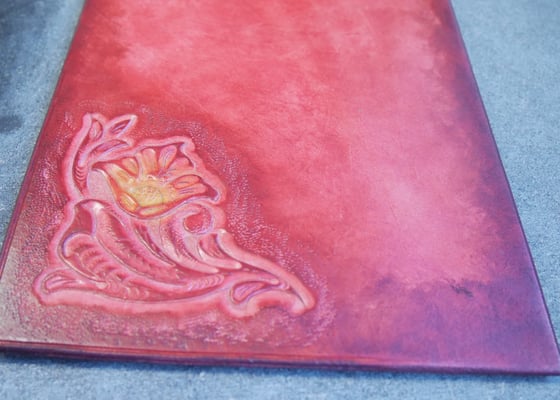 Stéphane vient de partir après 3 jours de formation ou nous avons abordé les différents types de cuir, les outils à main, le point sellier, le repoussage, la teinture et le patronage.
