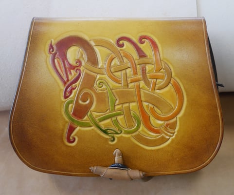 Voici une nouvelle aumônière avec un motif d'inspiration celtique. Le dessin provient du livre de Vitor Gonzalez "Art of the North"