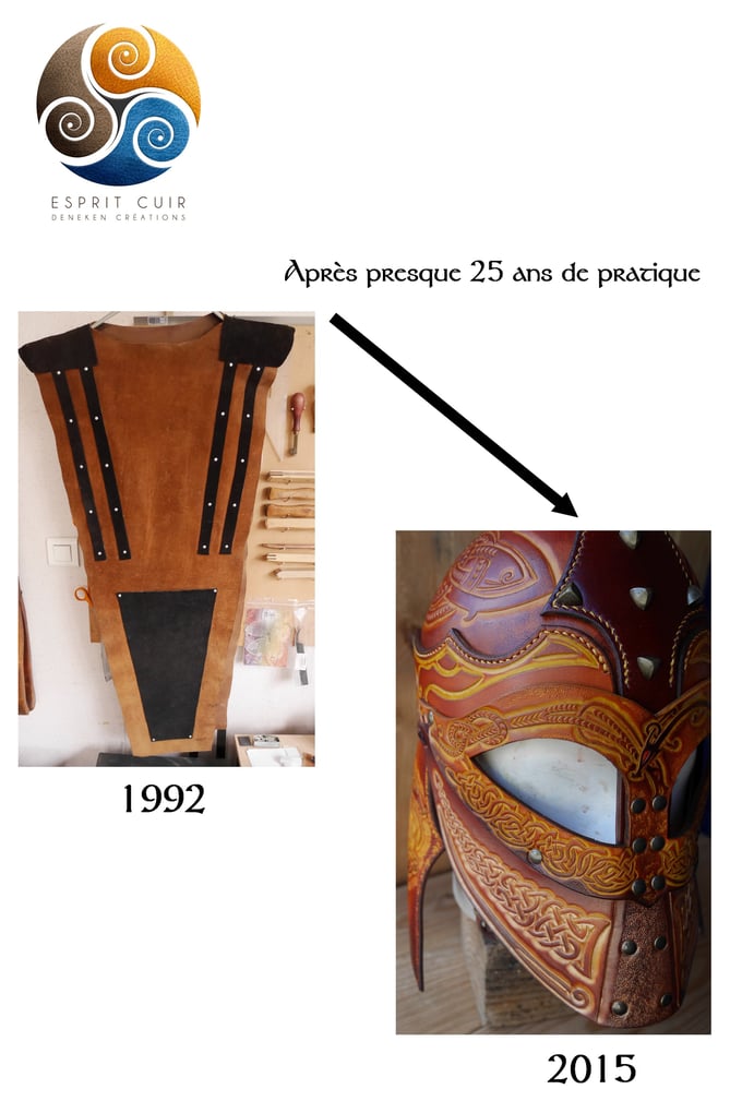 Ma première création montre bien mon univers. Toujours fidèle à celui-ci, je continue à créer moultes armures et pièces de costumes :)