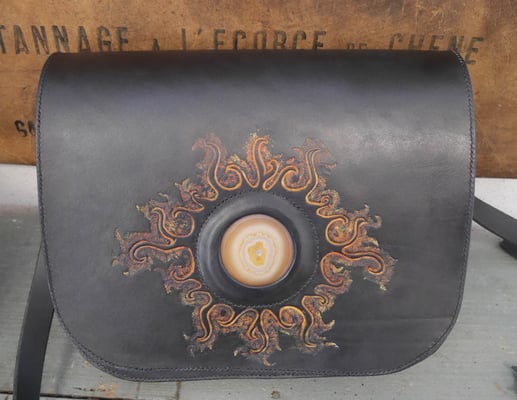 Voici quelques réalisations de la semaine dernière (Toujours du tannage végétal, pour la base et du minéral pour les soufflets, du point sellier, teinture base aqueuse) .