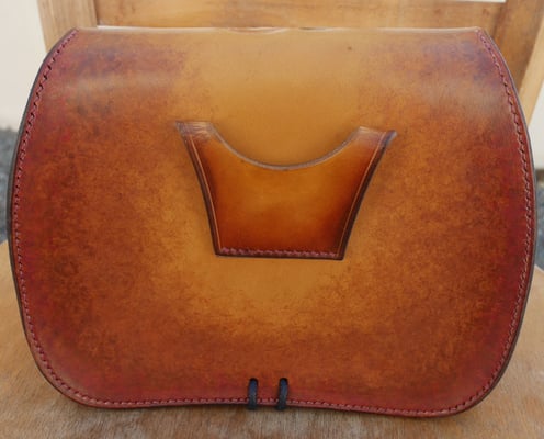 Voici une aumônière en cuir tannage végétal de la tannerie Radermecker.