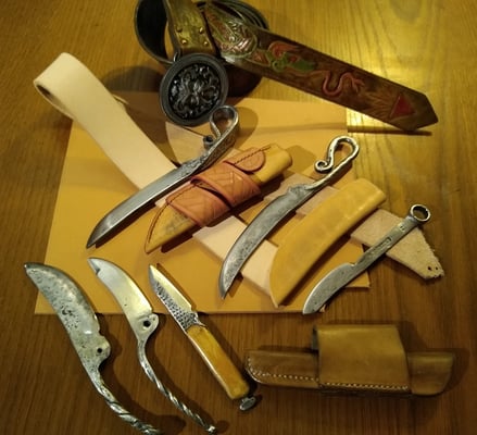 De belles réalisations : ceintures, sacs, étuis de couteaux :
