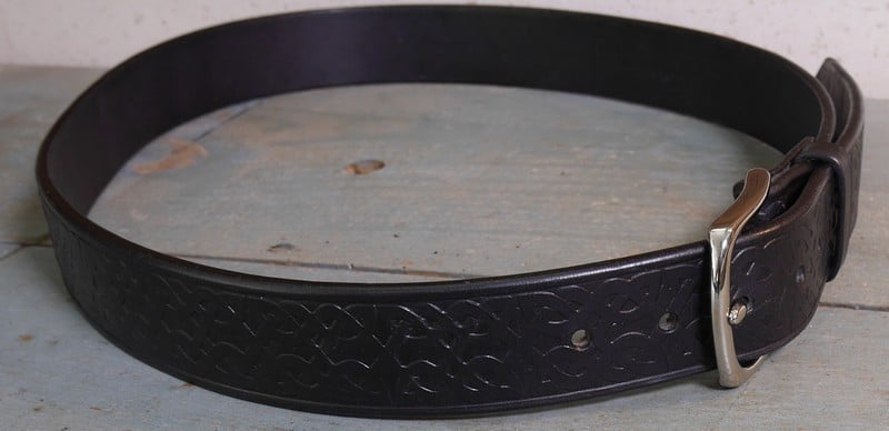 Carole a réalisée une ceinture embossée avec des motifs celtiques en cuir tannage végétal de la tannerie De Chamont.
