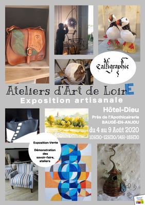 Nous sommes honorés de faire partie de ce regroupement d'artistes et d'artisans locaux: Ateliers d'art de Loire. Nous avons aussi la chance de pouvoir exposer dans le cadre de l'Hôtel-Dieu de Baugé-en-Anjou. Vous y trouverez exposer nos éléments de costumes, nos sacs et sacoches, nos bracelets, nos ceintures et nos grimoires. Nous serons présents tous les matins de 10h30 à 12h30 et de 17h30 à 18h30. Nous serons ravis de vous y retrouver.