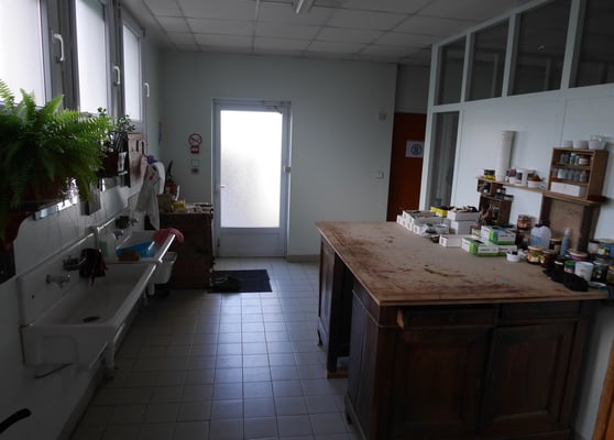 - 1 pièce annexe avec les machines : pareuses, refendeuse, machines à coudre...