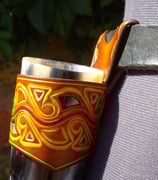 Étui unique moulé sur le couteau* et finement sculpté puis teinté et patiné