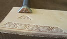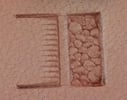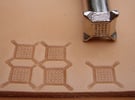 Les matoirs de type "beveler" sont les plus utiles. Ils doivent rester discrets au profit du motif. Ainsi, il ne faut pas voir la trace (marque laissée par la forme du beveler) mais le contour "doux" du motif. La pente douce formée par le passage des bevelers doit être parallèle au dessin et lui être fidèle. Attention donc à l'inclinaison et à la force de frappe mise en oeuvre en fonction du beveler utilisé.