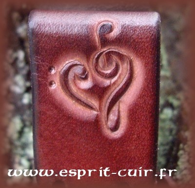 Etui en cuir végétal réalisé à la main ( couture point sellier, martelage, teintures écologiques acajou clair et foncé ).