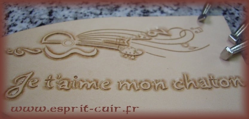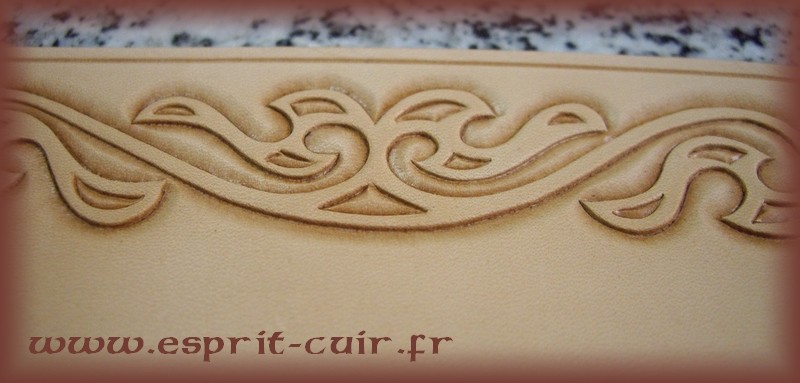 Etui en cuir végétal réalisé à la main ( couture point sellier, repoussage, teinture écologique )
