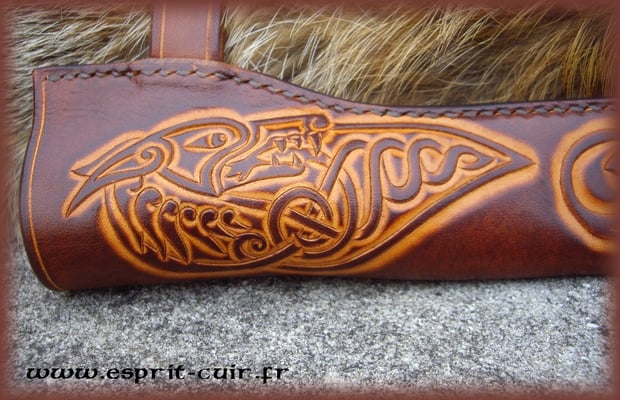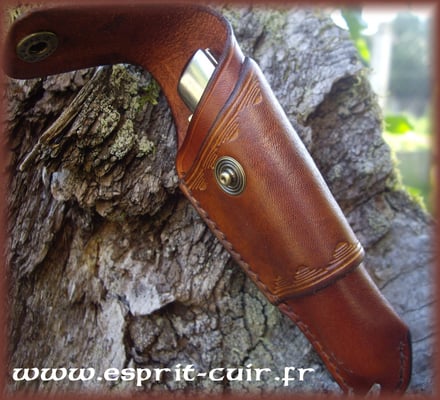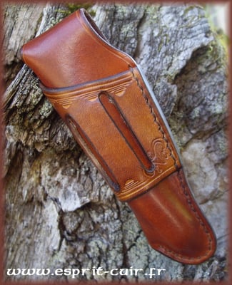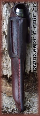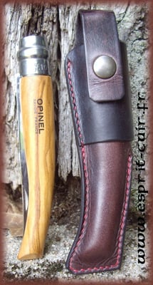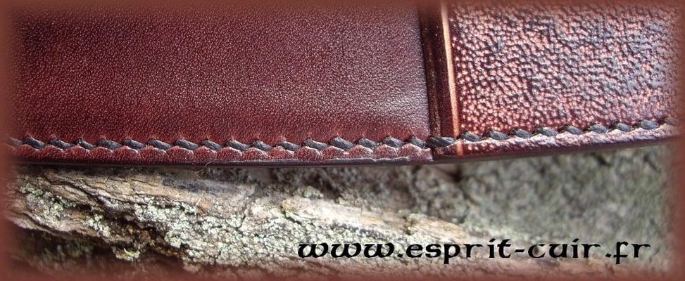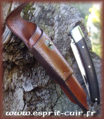 Etui pour laguiole réalisé en cuir végétal et cousu main avec du fil de lin poissé ( point sellier).