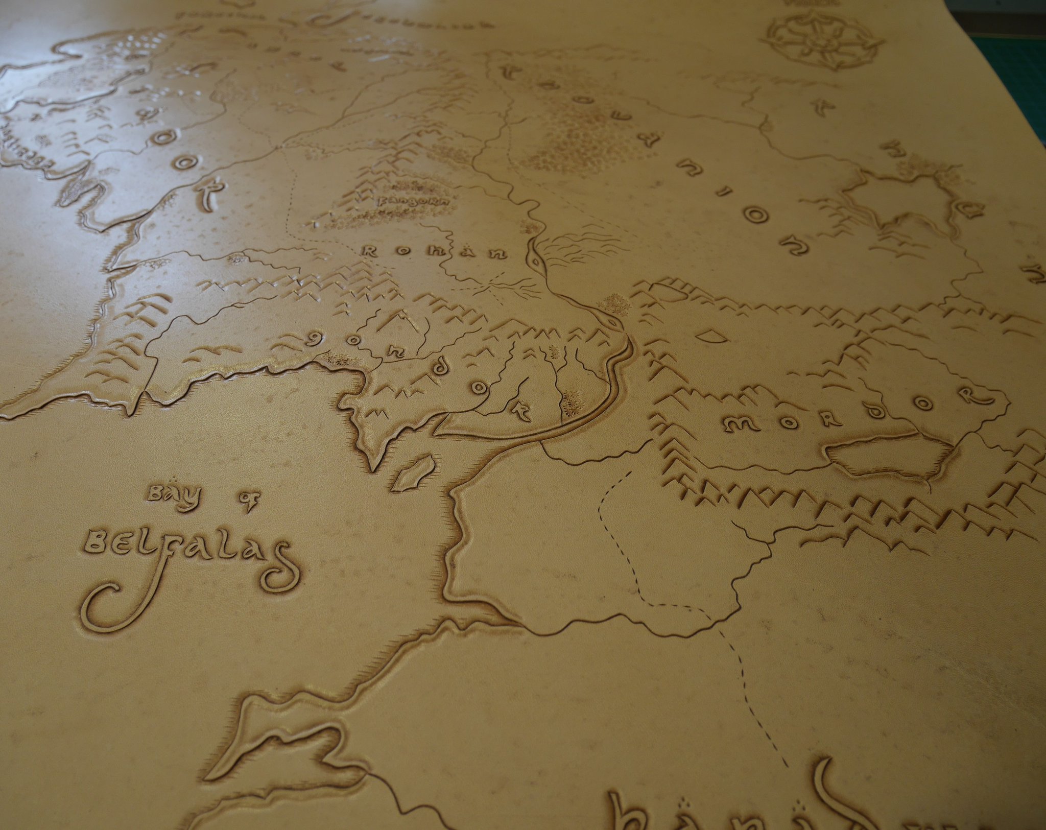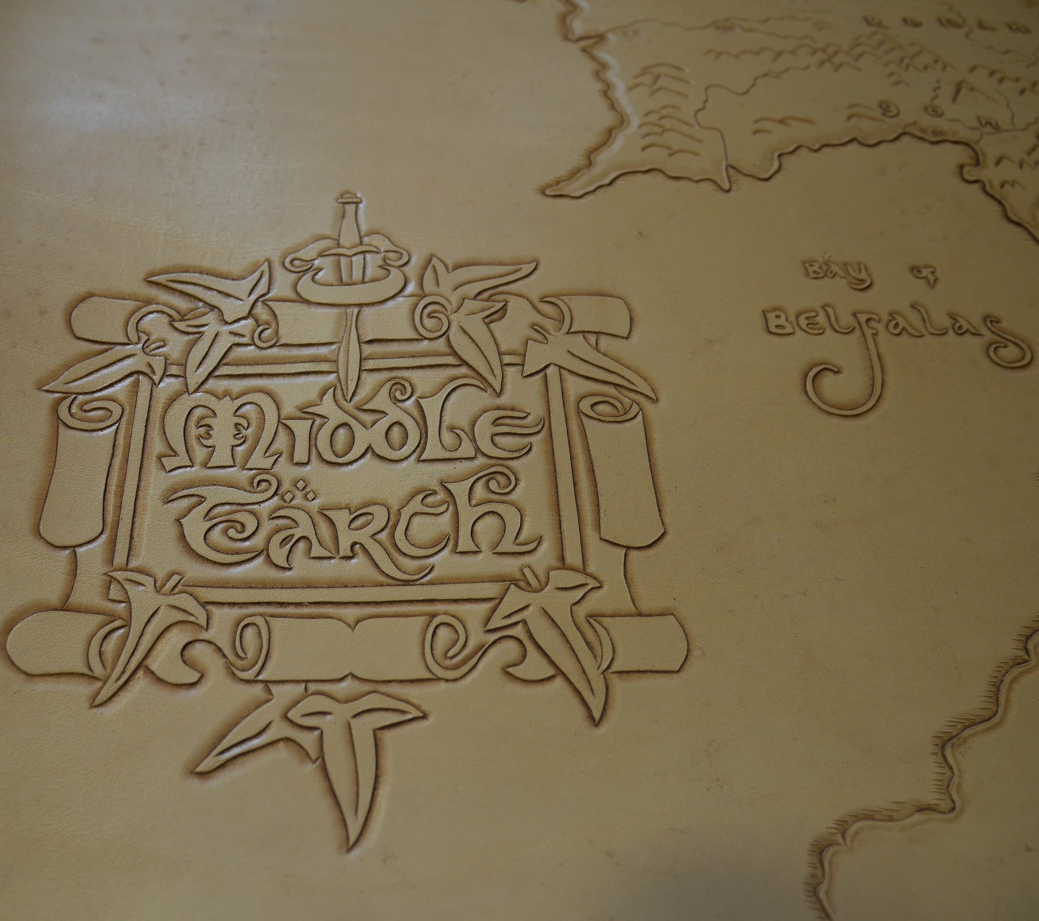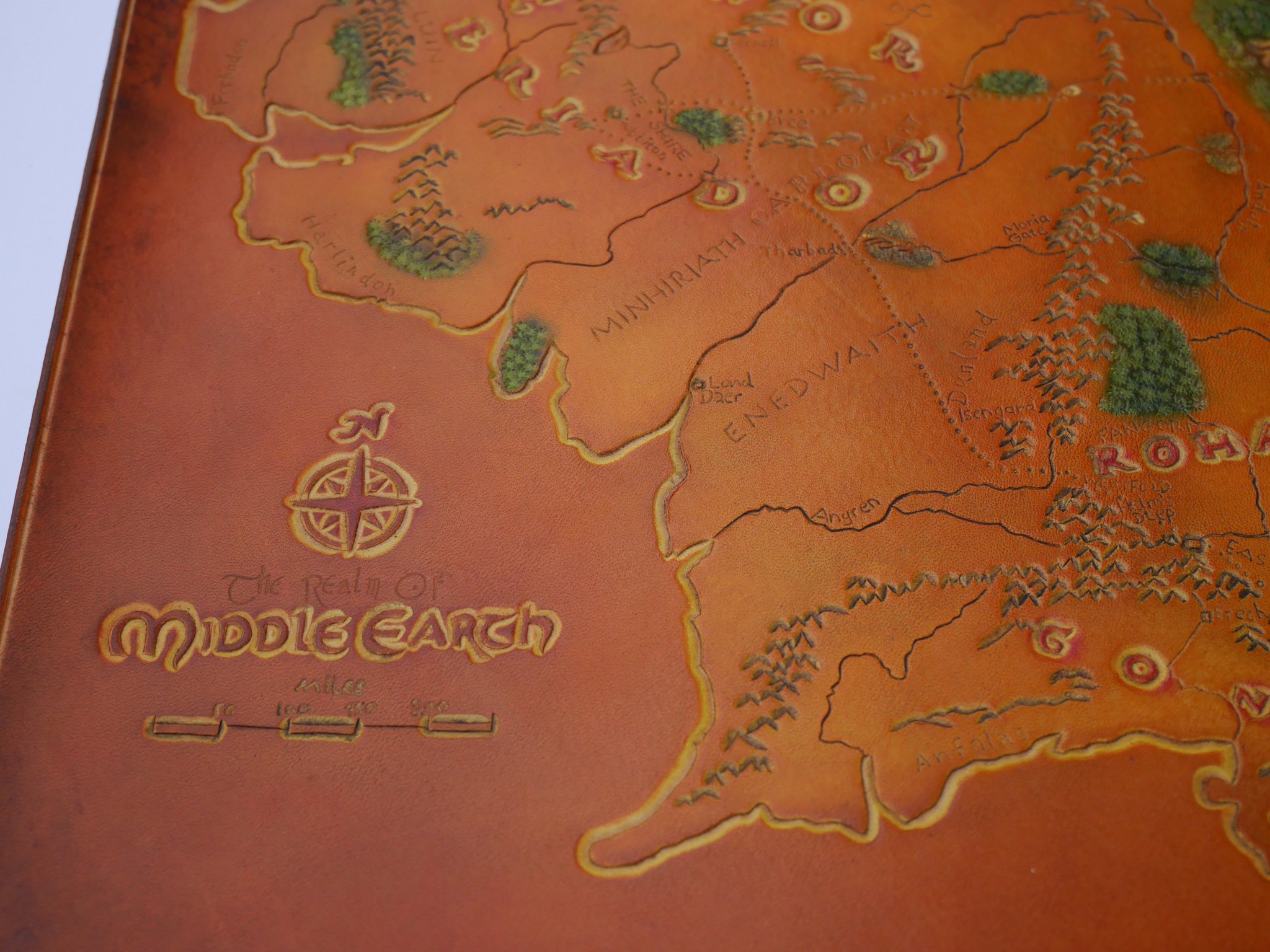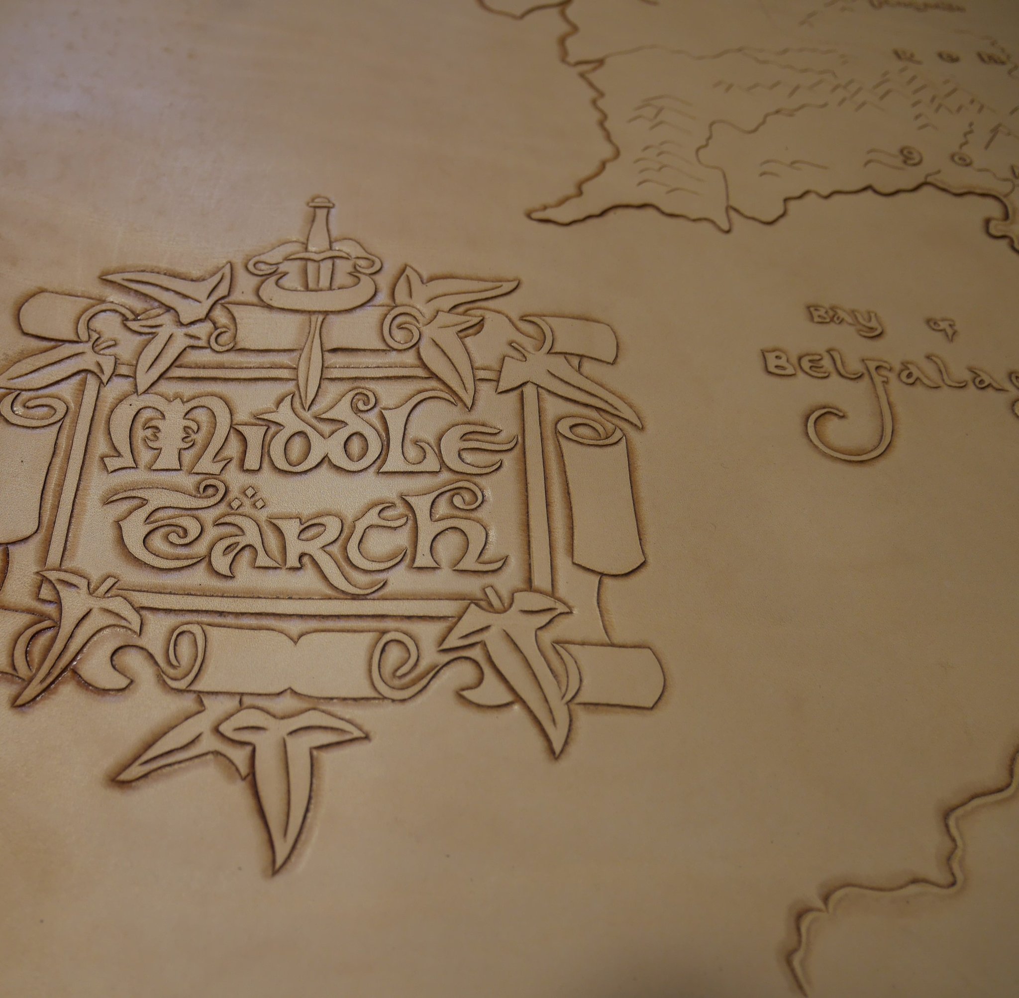Carte au format A3 réalisée sur du collet tannage végétal pleine fleur.