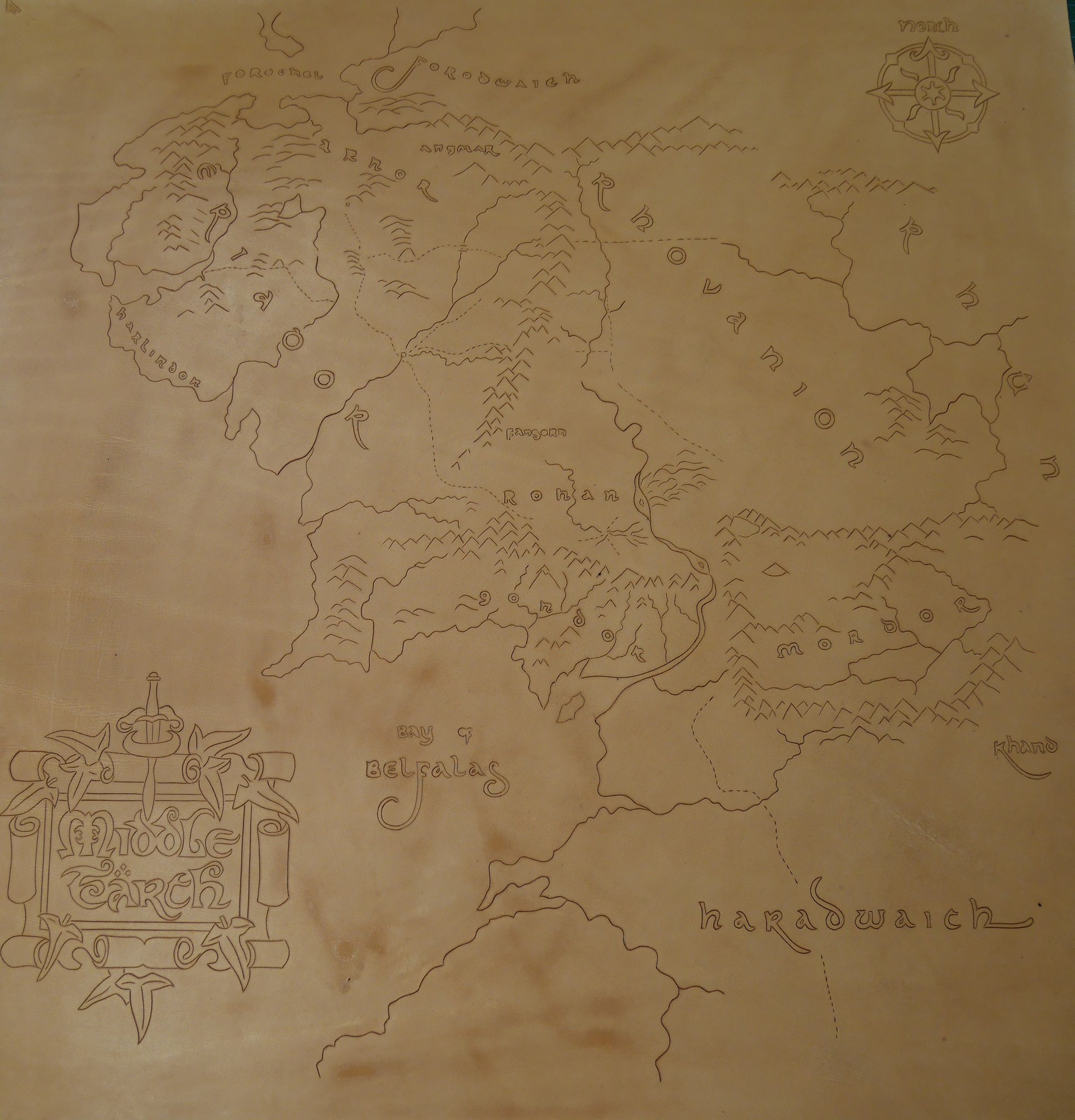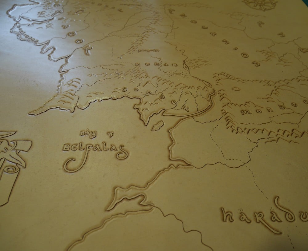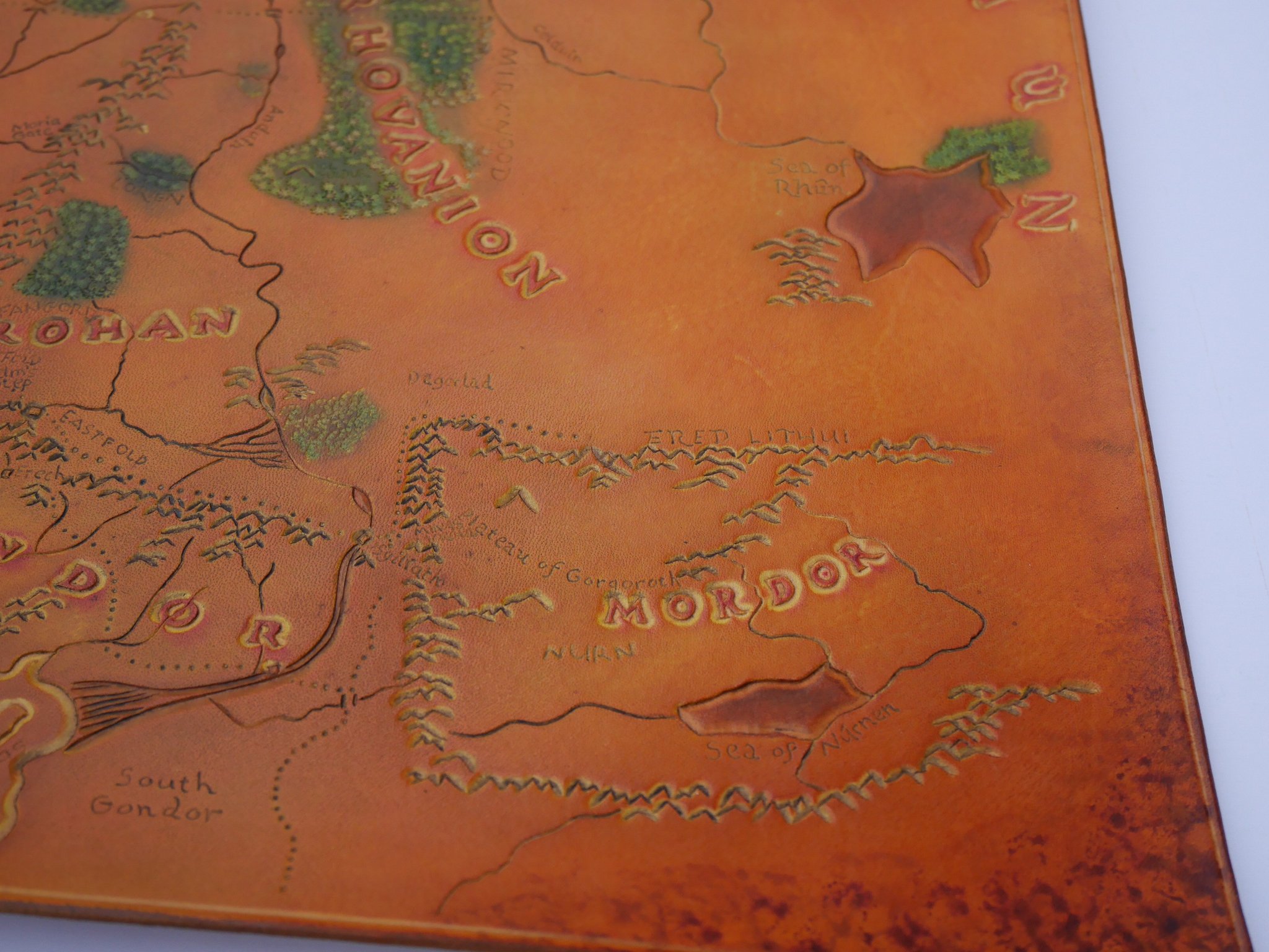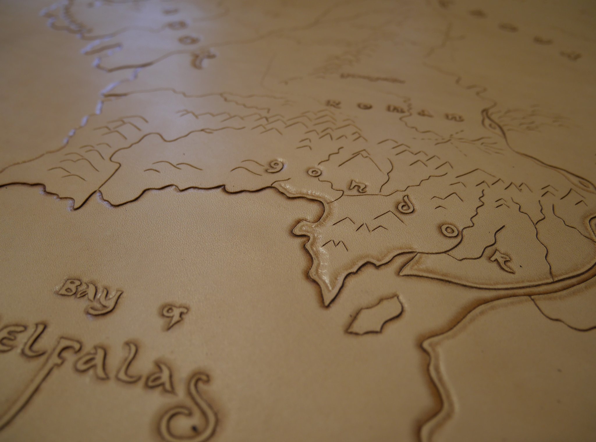 Carte au format A3 réalisée sur du collet tannage végétal pleine fleur.