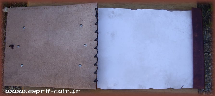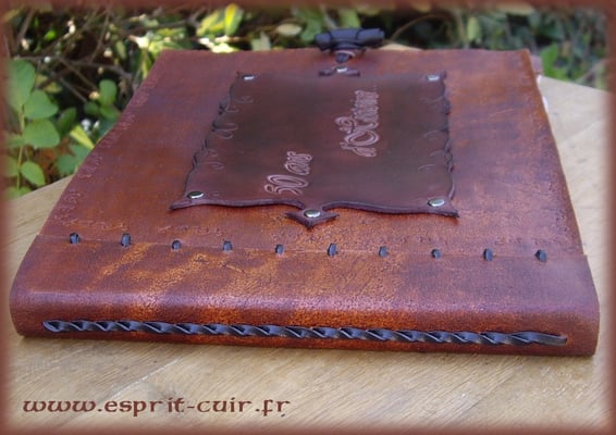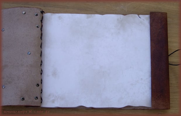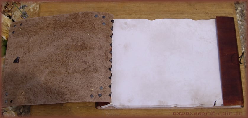 Grimoires antiques de taille A4 en croûte de cuir. Les pages sont amovibles grâce aux vis de fixation.