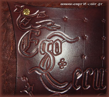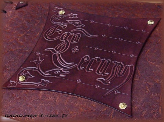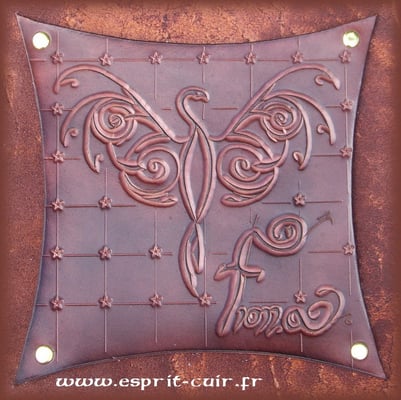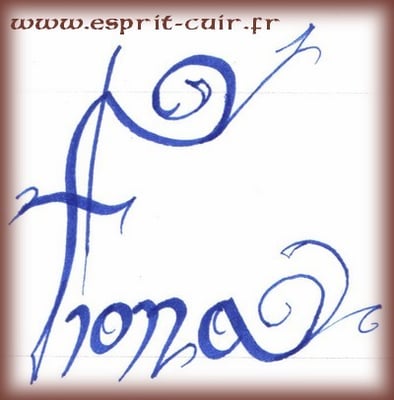 Motif fourni par l’acquéreur, la calligraphie "Fiona" est réalisée par Christelle DENEKEN pour Eden Esprit Cuir.