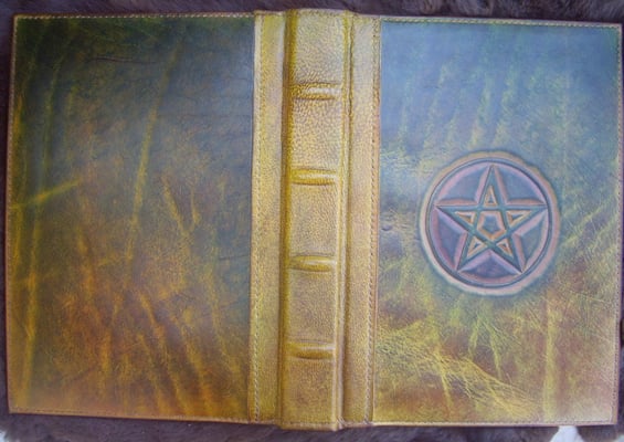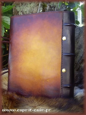 Grimoire façon couvre-livre de format A5 en 3 pièces afin de faciliter son ouverture.