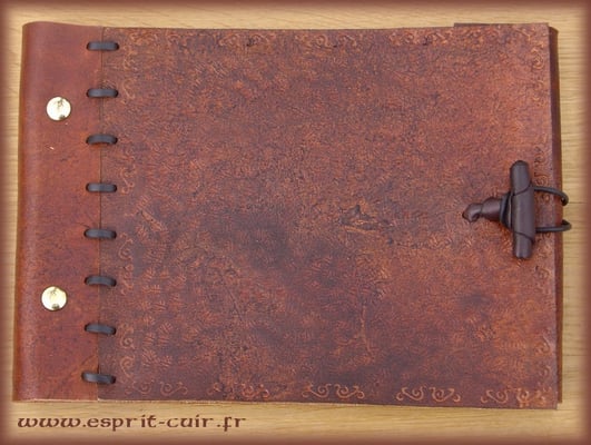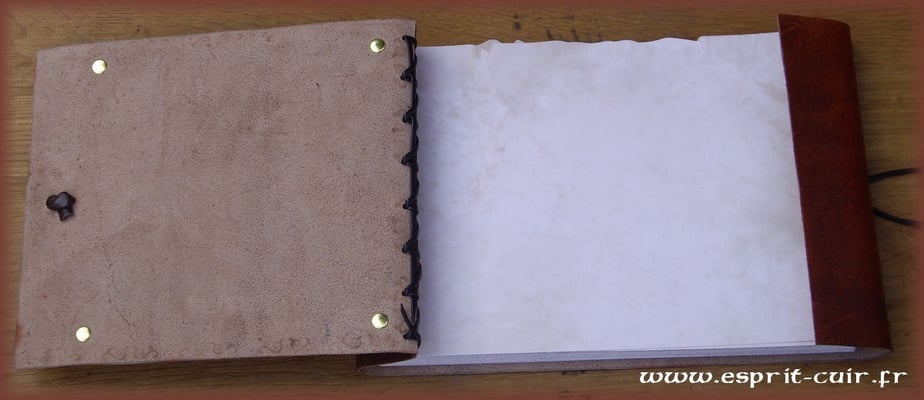 Grimoires antiques de taille A5 en croûte de cuir ou en cuir végétal pleine fleur. Les pages sont amovibles grâce aux vis de fixation.