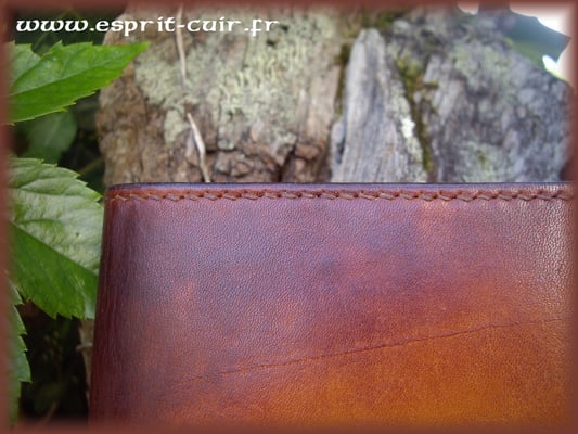Cuir végétal pleine fleur et teinture base aqueuse.