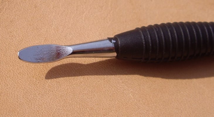 Elles peuvent être en bois, corne ou plastique. Les formoirs ont pour but de réaliser une ligne parallèle au bord de la pièce. En faisant des allers-retours, le cuir est chauffé et prendra moins la teinture. C’est esthétique mais aussi pratique car ce trait peut servir de guide pour la couture (voir plus bas un exemple).